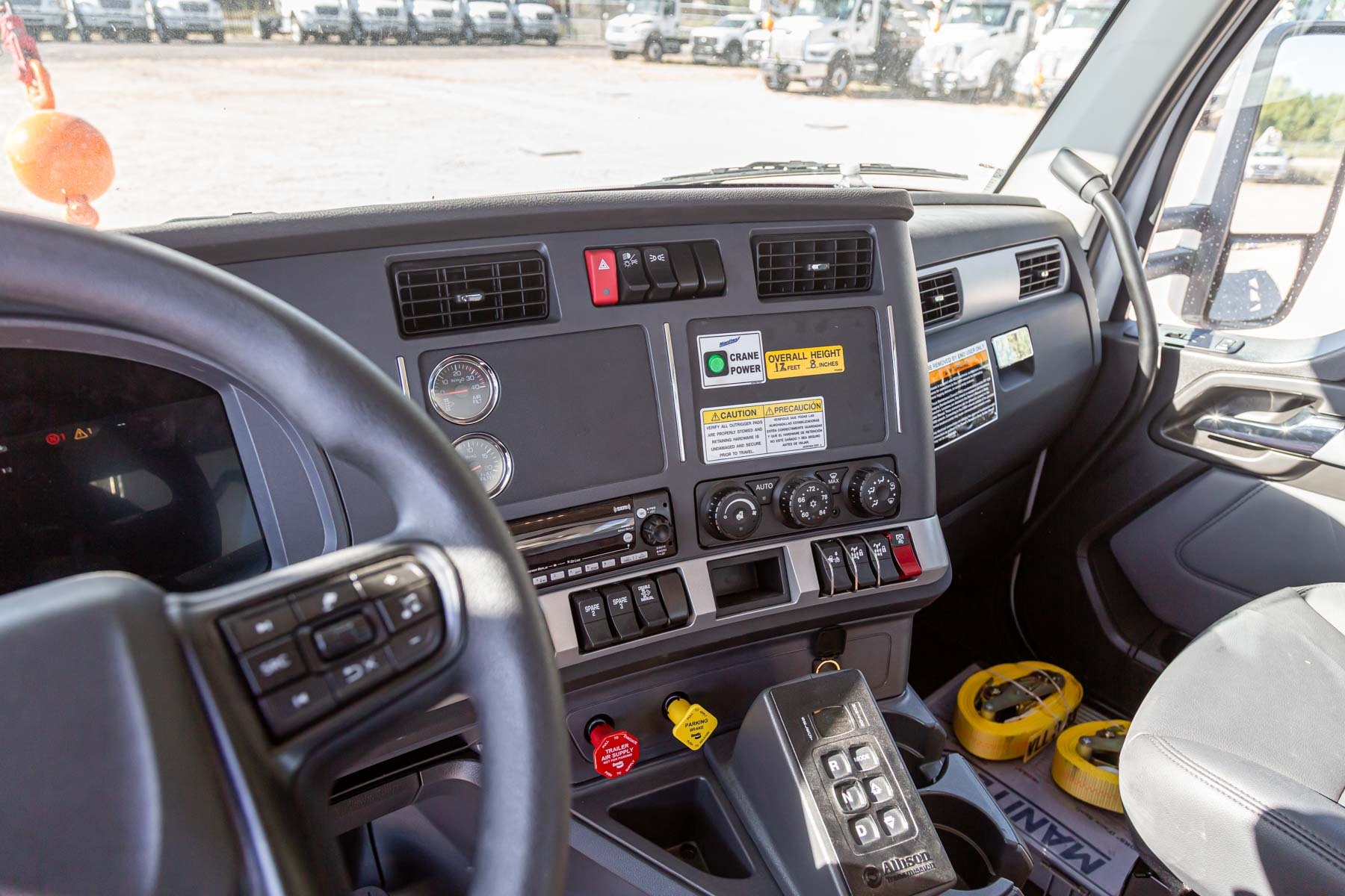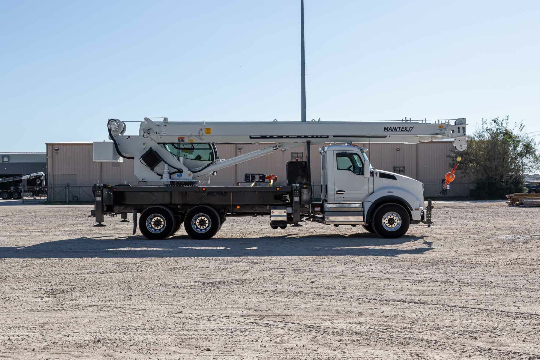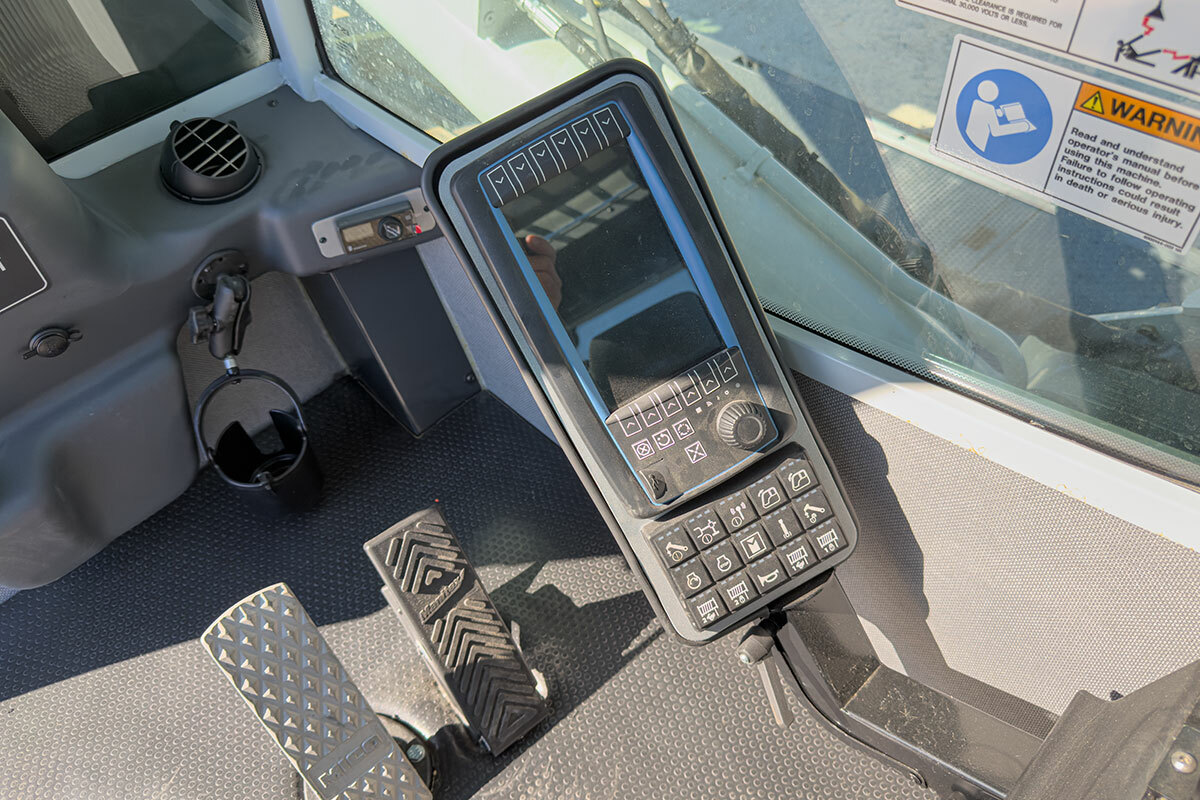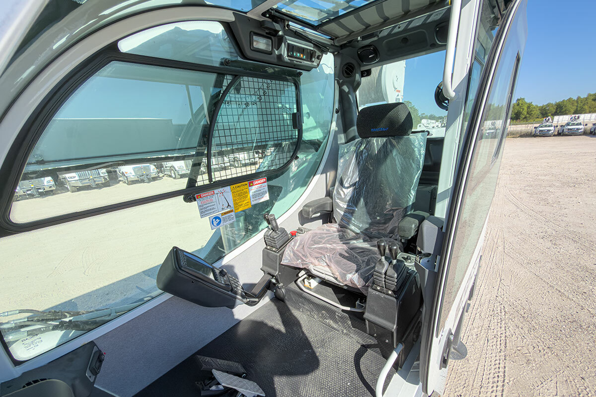 The operator station also includes engine start/stop, electronic foot throttle, signal horn, load moment indicator display, view of boom angle indictor, load chart, range diagram and the Manitex ACCUSwing control that allows the operator to adjust swing speed up to a maximum of 2.0 rpm.