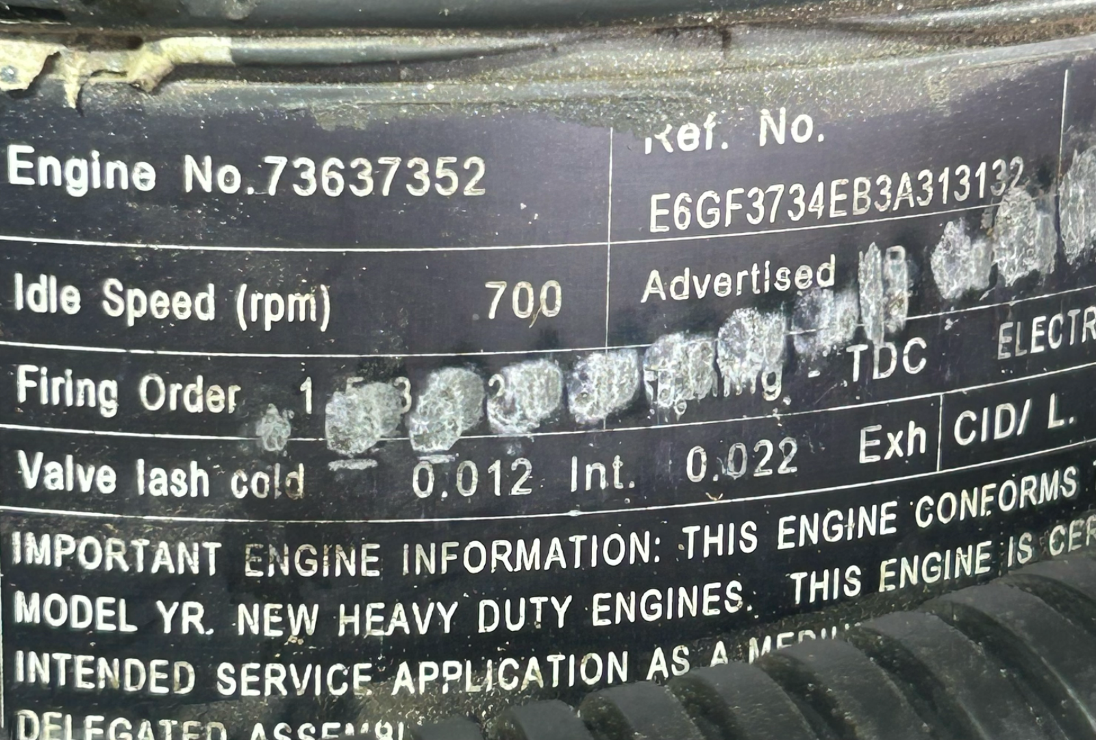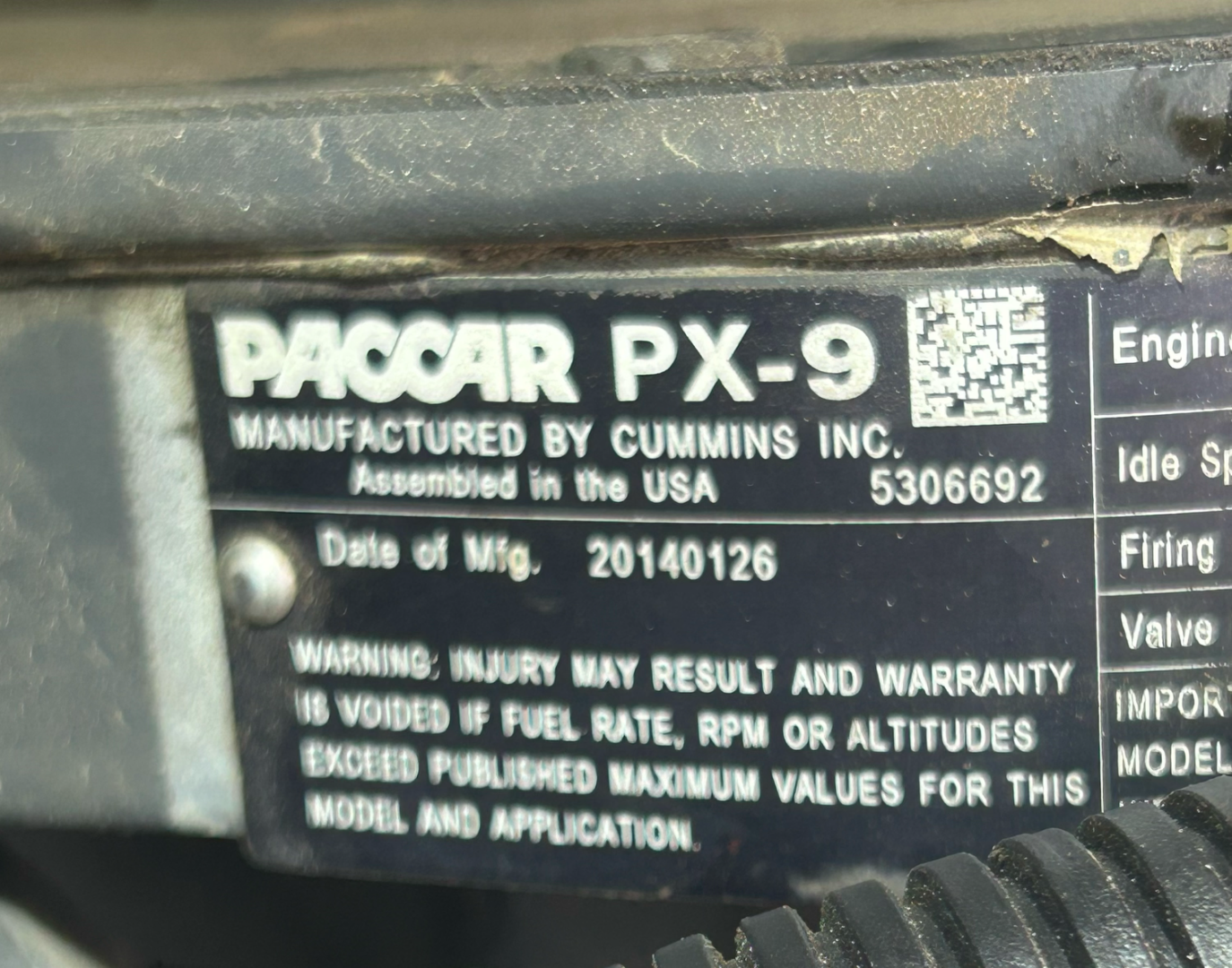 • Cummins Paccar PX9 Diesel Engine, Engine Number: 73637352; Family Number: ECEXH0540LAV,