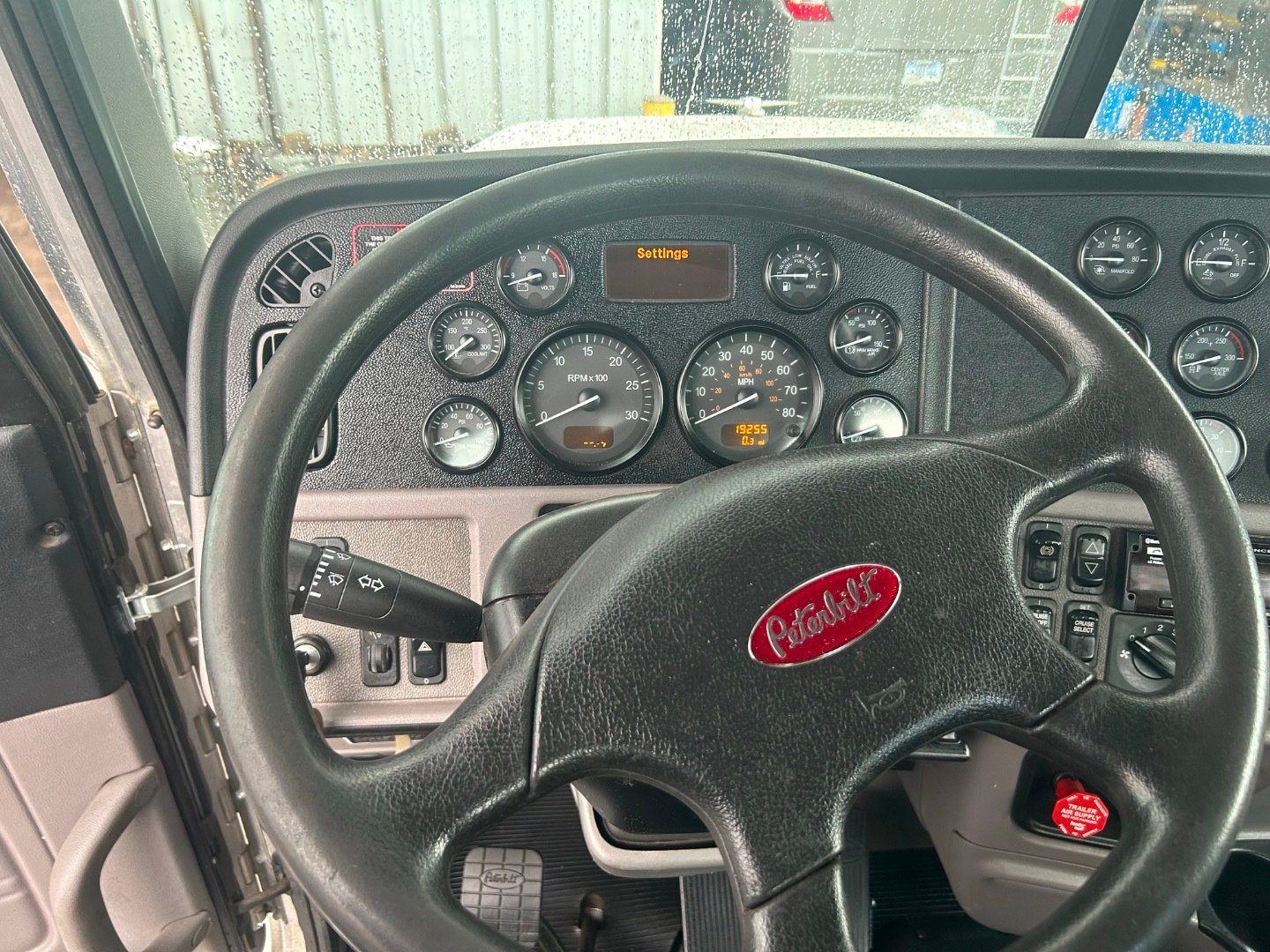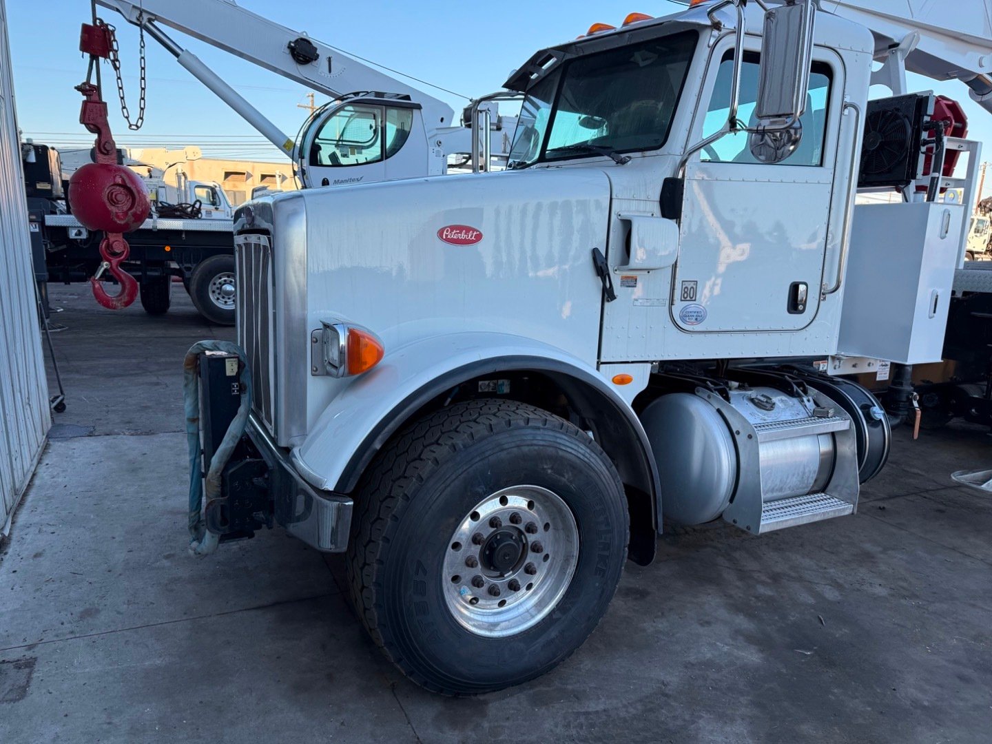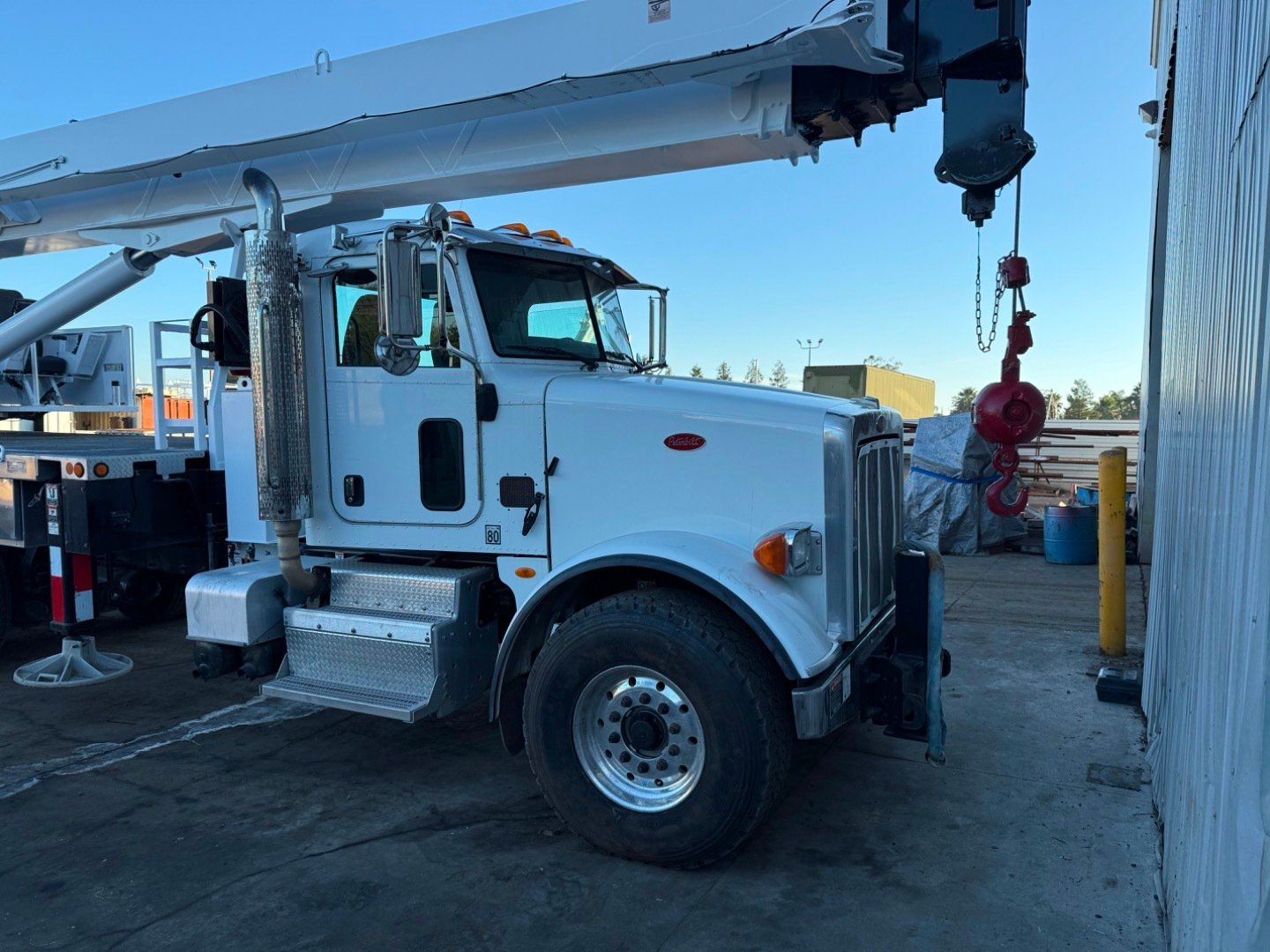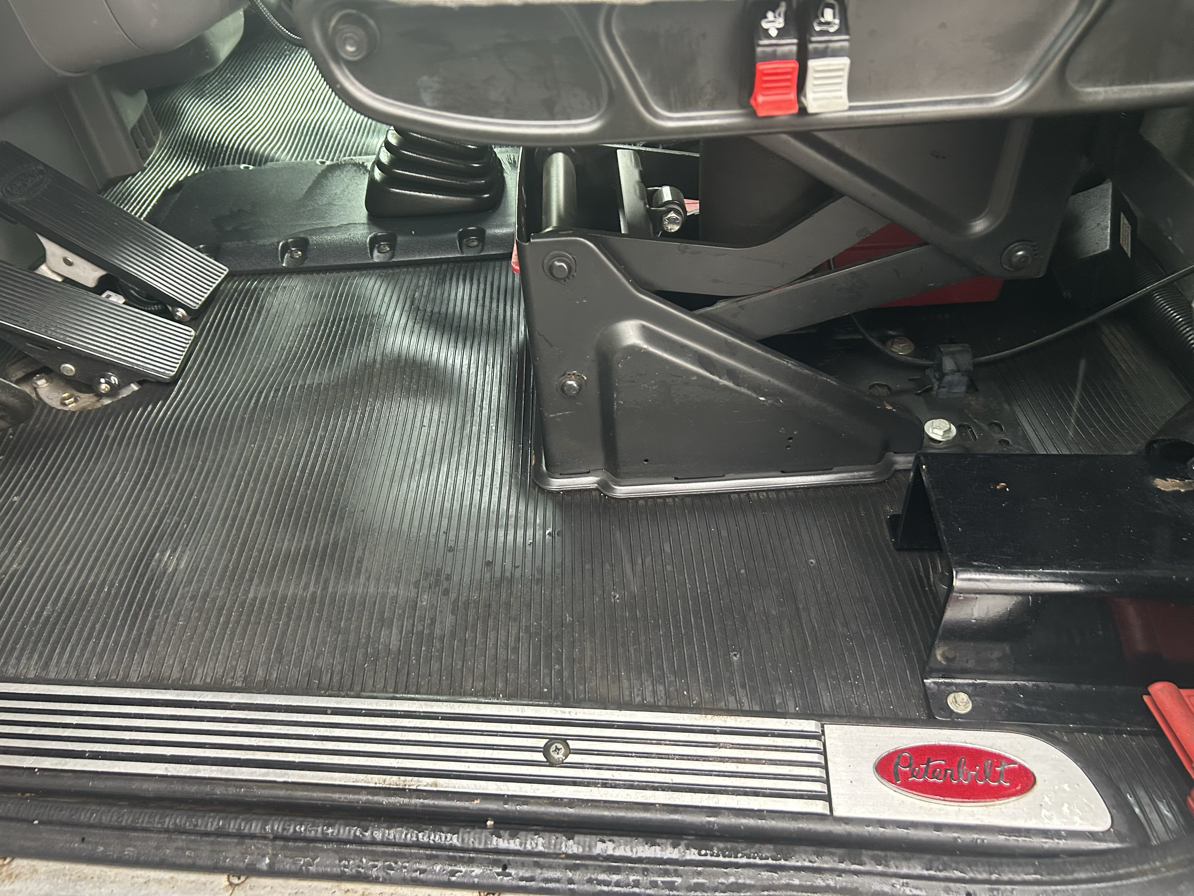 • Rear Mounted with a rider's seat behind the Cab of a Peterbilt Tri Axle Truck,