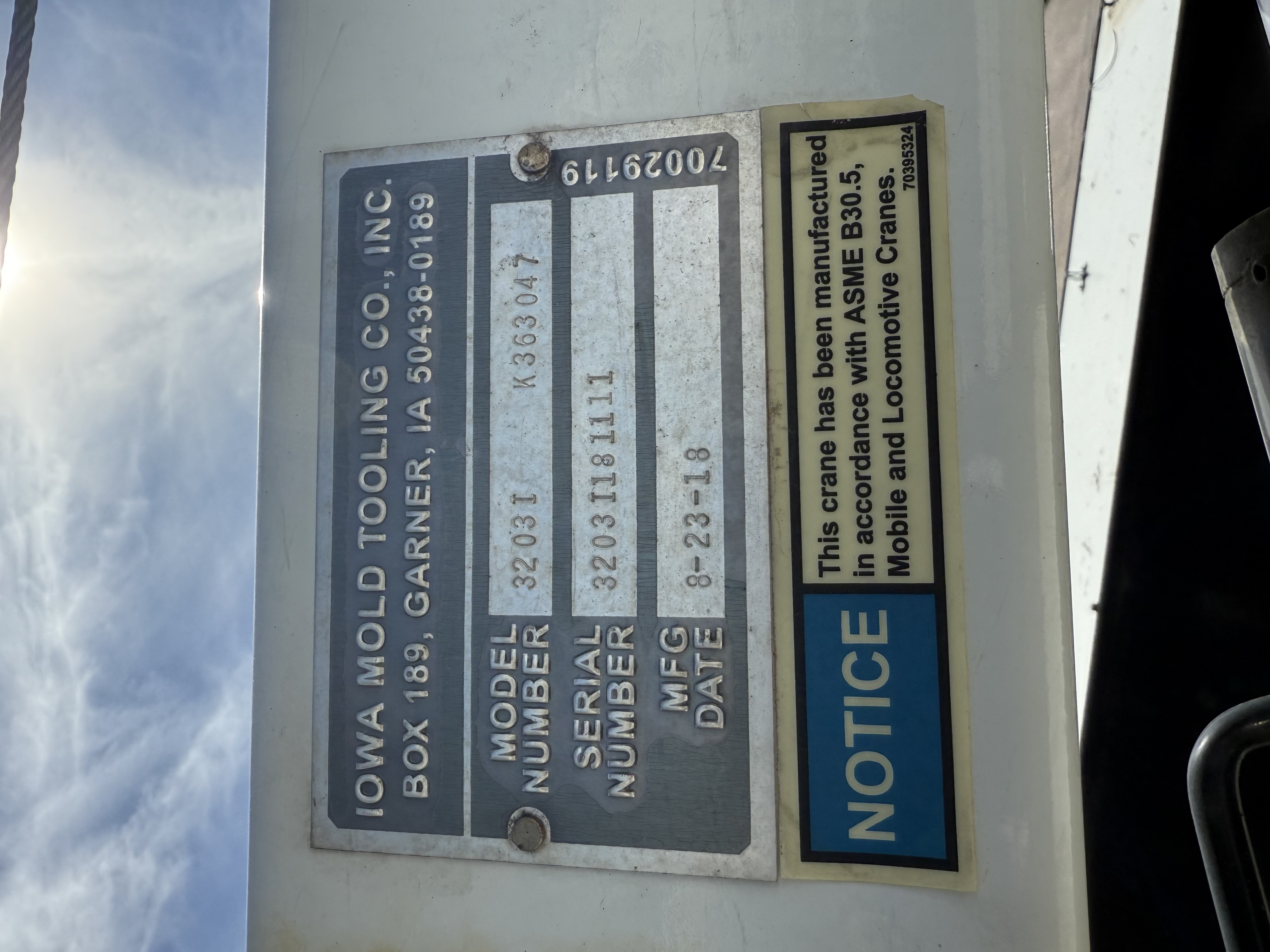 The IMT 3203i telescopic crane is rated at 12,000 ft-lb and features a vertical lift of 16' 1".